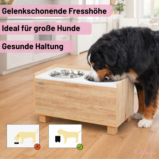 Erhöhte Futterstation mit Stauraum, Slow-Feeder & Eichenholz-Design