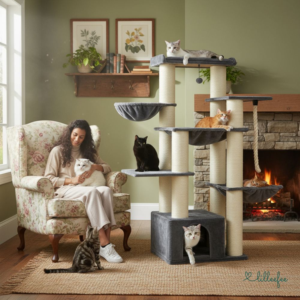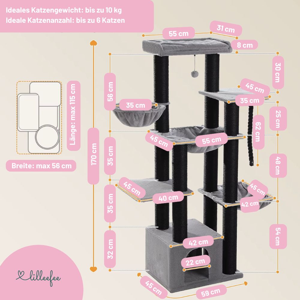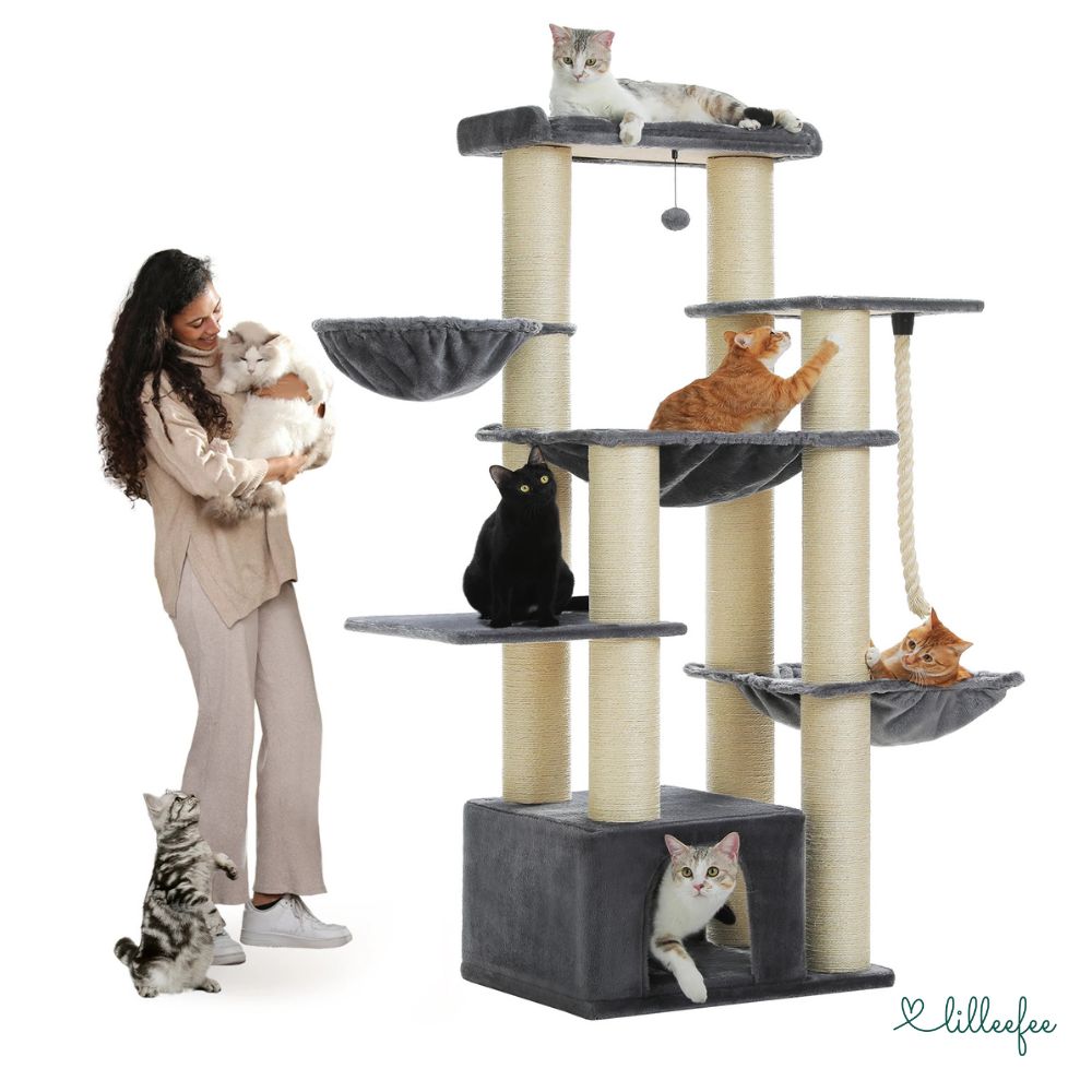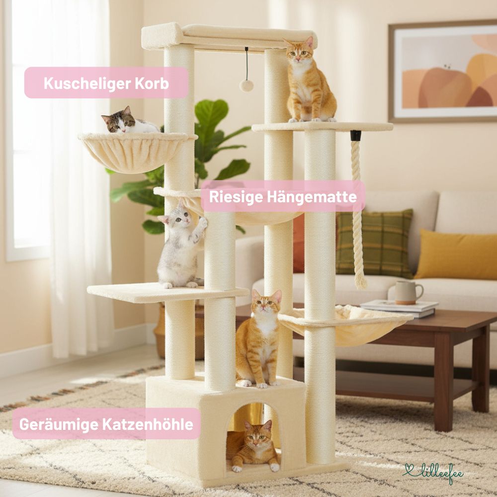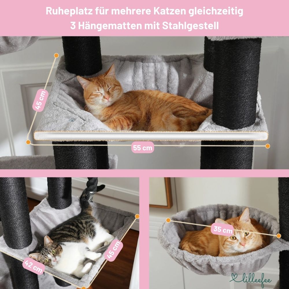 Stabiler Kratzbaum mit Hängematten, Liegeflächen und...